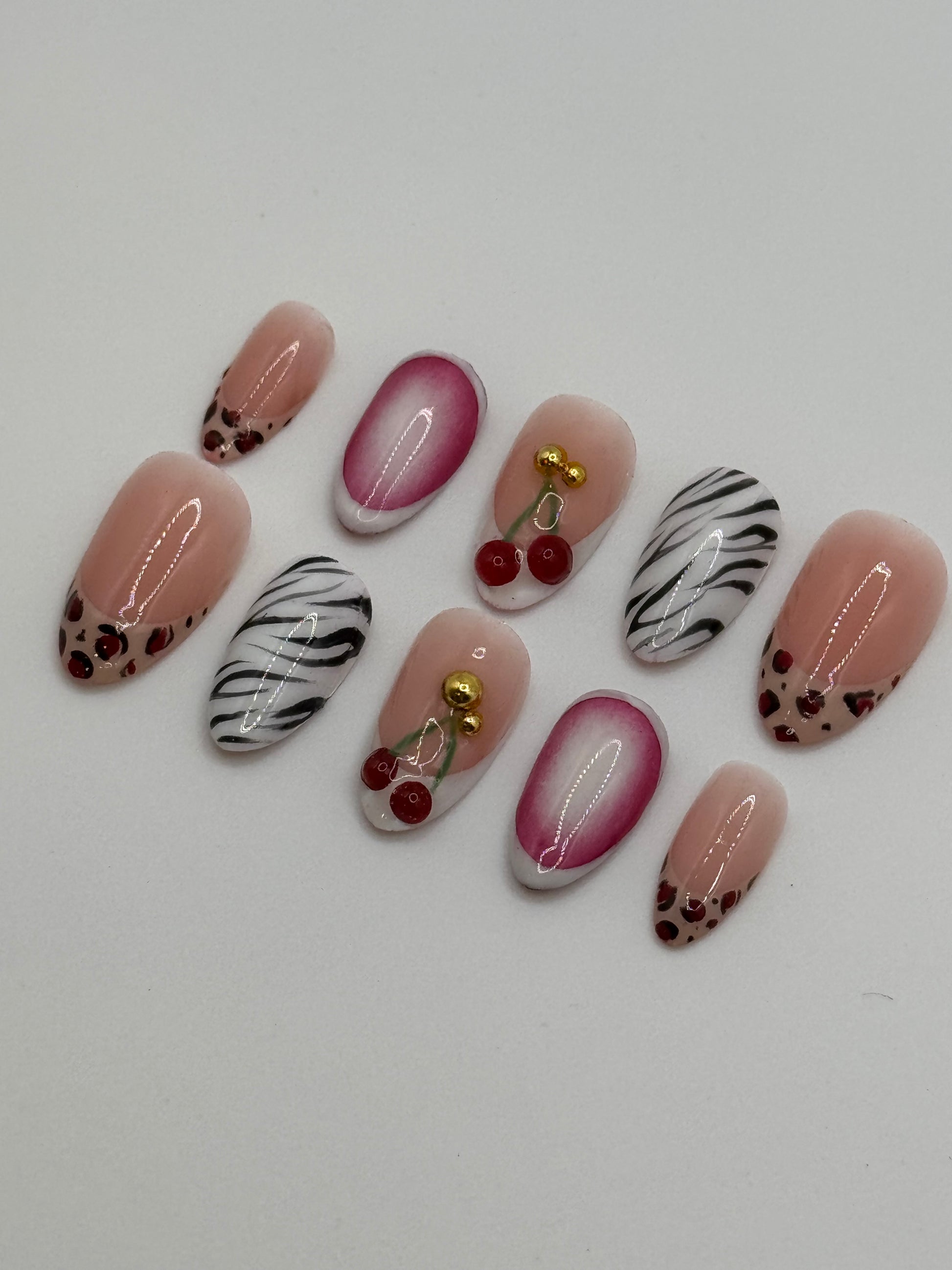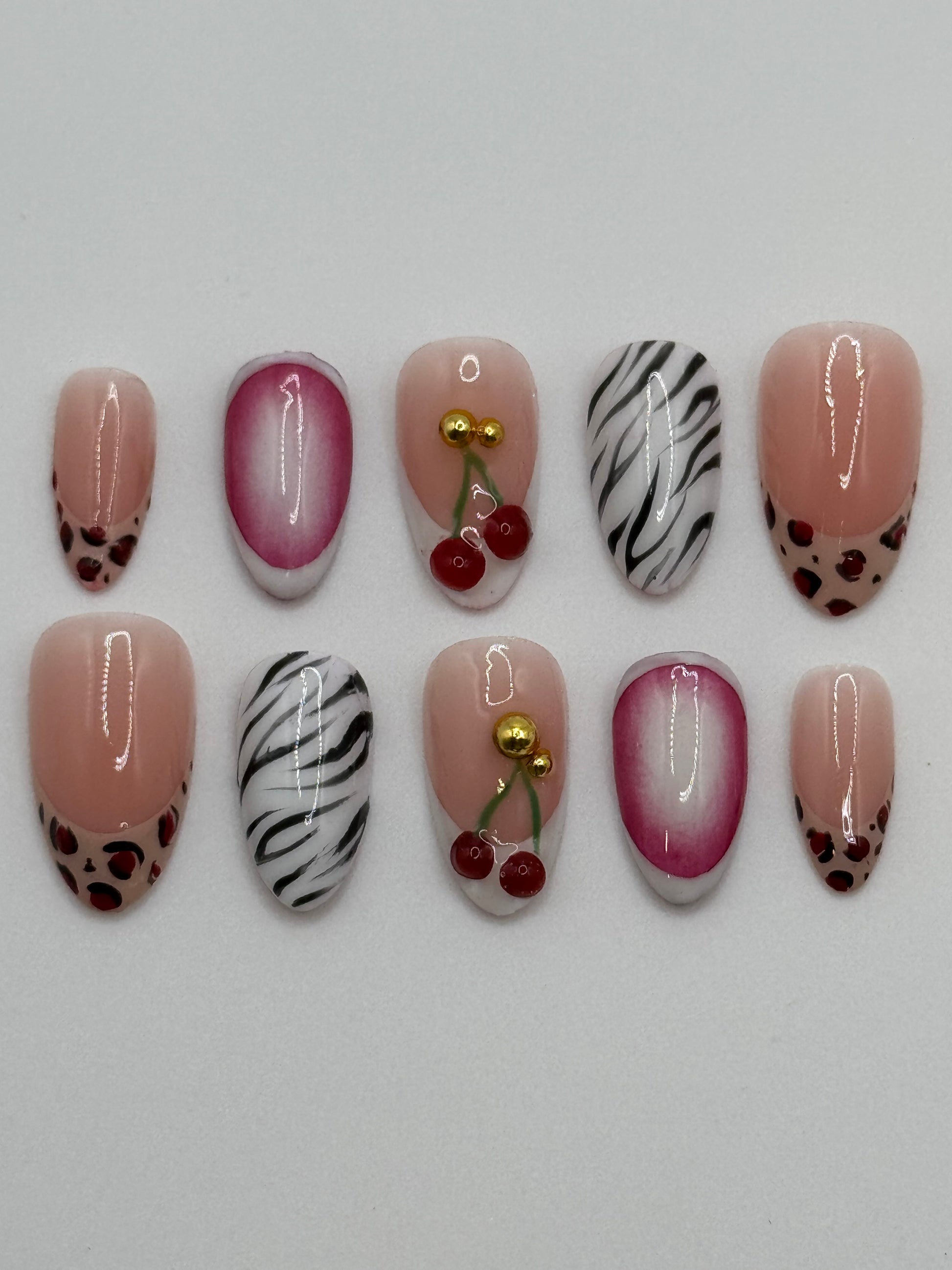 Cherry on top is a short almond set available in four standard sizes or custom sizing. Each set is handcrafted and made to order.